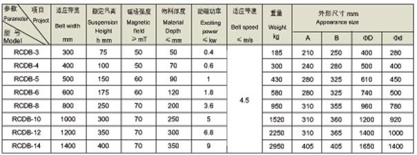 RCDB系列干式電磁除鐵器(亦稱PDC系列盤式、RCDY系列)是一種用于清除粉狀或塊狀非磁性物料中雜鐵的除鐵裝置。 其主要性能指標均達到或高于JB/T7689-95標準要求。